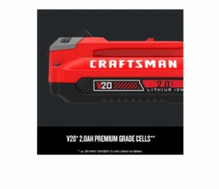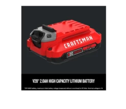 CRAFTSMAN CMCB202 V20, 2.0Ah Lithium Battery pack is made with you in mind. The battery offers premium grade high performance cells for improved power.