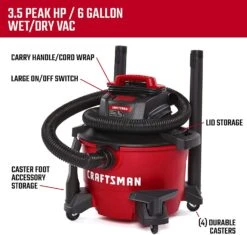 CRAFTSMAN CMXEVBE17584 6 Gallon 3.5 Peak HP Wet/Dry Vac, Portable Shop Vacuum with Attachments , Red