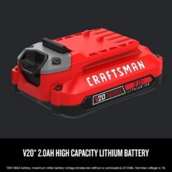 This 2 pack of V20* 2.0Ah Lithium Ion Batteries provides up to 1.5x the runtime of a standard 20V MAX* lithium battery**. They are compatible with all the CRAFTSMAN V20* cordless power tool and outdoor tool lineup. The professional grade high performance cells of CRAFTSMAN 20V battery provide improved power and a longer cycle life. Each pack is equipped with a 3-LED state of charge for immediate battery charge feedback. No memory and virtually no self-discharge means these batteries are ready when you are.