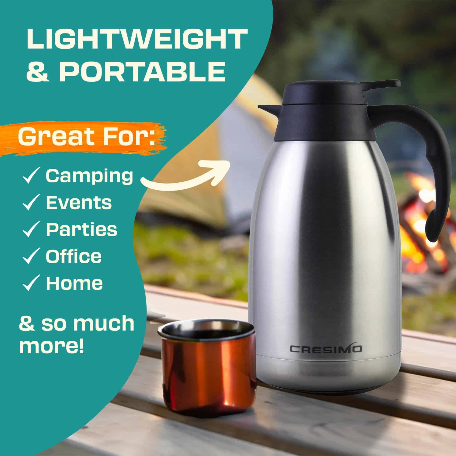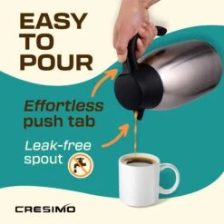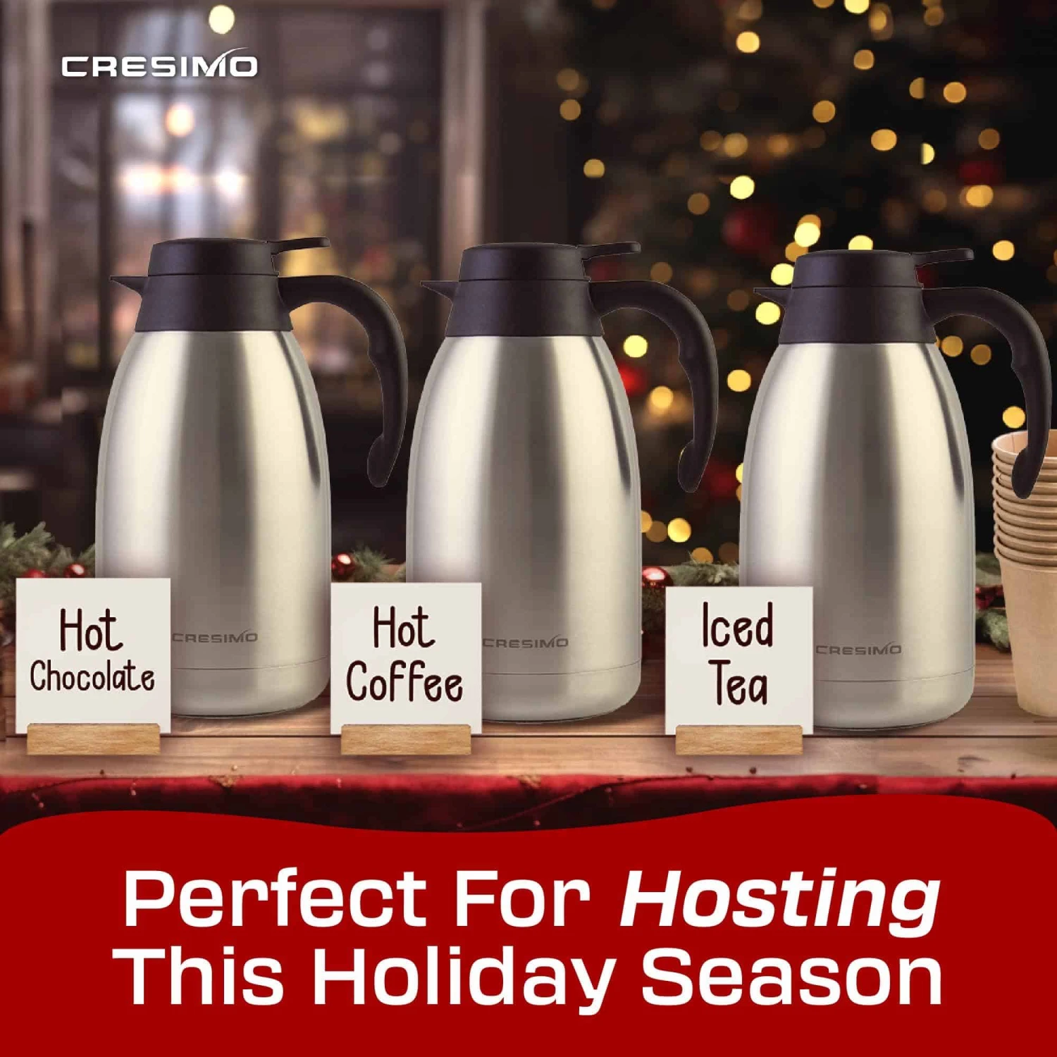 CRESIMO Thermal Coffee Carafe 68oz / 2L – 24 Hours Hot Beverage Dispenser, Insulated Stainless Steel Water Coffee Urn