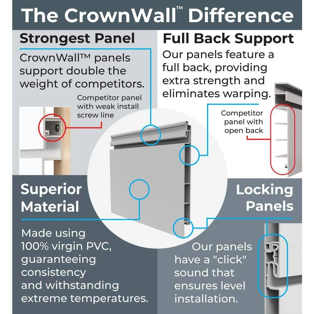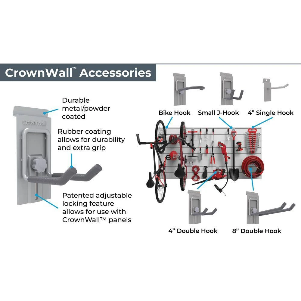 This bundle offers an excellent assortment of hooks combined with a 32 sq. ft. section of our heavy-duty CrownWall to help get you started. The accessories boast high grade steel back plates which disperse the workload throughout the wall. Empowering you to hang whatever you want, wherever you want. Cut the clutter with the strongest and most stylish slatwall on the market. Reclaim valuable square footage by maximizing usable wall space to fit your unique needs. Our modular design means no space is too great or too small. Cover your walls, install a simple section, or even break it into several tracks. Our panels can be easily cut to any desired length. Change your configuration or add to it at any time.