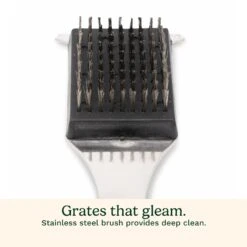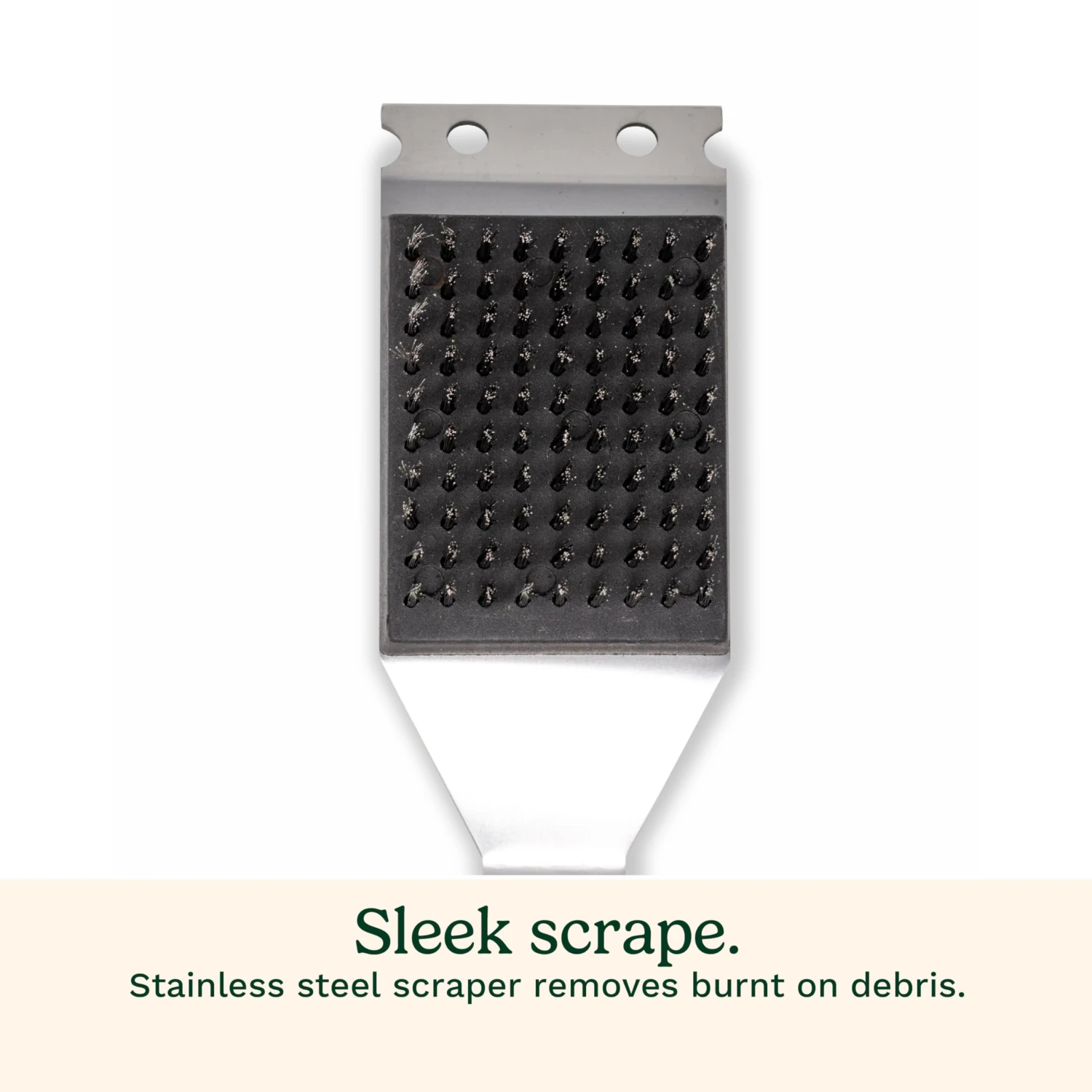 - STAINLESS BRUSH AND SCRAPER: The brush is made from stainless steel, meaning it won’t rust or deteriorate, and also features a stainless steel scraper at the end of the brush to help remove tough debris from the grates.