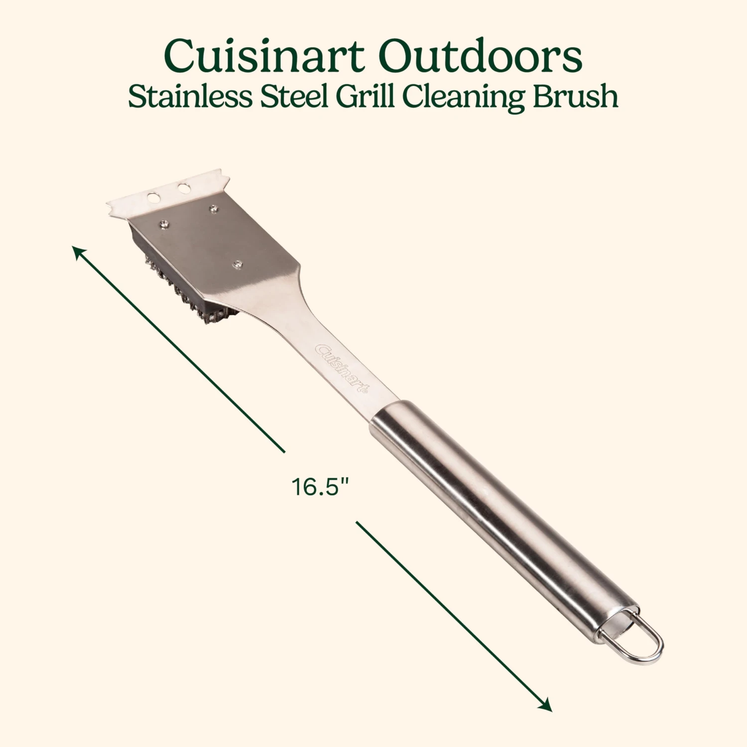 - 16. 5″ INCHES LONG: The 16. 5-inch-long brush complements all grill sizes and allows you to safely reach and clean all areas of your grill. The brush can be used alone or as part of the matching collection, Cuisinart Grill Set CGS-5014.