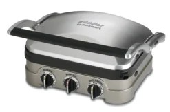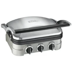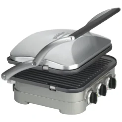 With five separate cooking options, the Griddler can handle everything from pancakes and sausages to grilled cheese to steaks, hamburgers, and panini. A floating cover and one set of reversible plates turn the Griddler into a contact grill, panini press, full grill, full griddle, or half grill/half griddle. Dual temperature controls ensure everything is perfectly cooked every time on the removable dishwasher-safe nonstick cooking plates for easy meals and clean-up.
