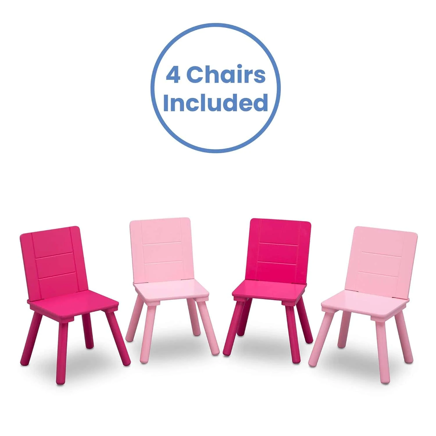 Delta Children Kids Table and Chair Set (4 Chairs Included), White/Pink