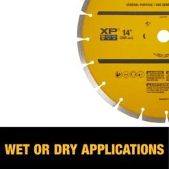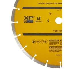 The DEWALT 14-in segmented diamond circular saw blade is designed for both wet and dry cuts. It’s ideal for use with tough materials like brick, cinder block, and ceramic. It’s a great addition to your tool box when you need a blade that’s compatible with bench top and stationary saws as well as with tile and cut-off saws. This circular saw blade features a thin kerf, making your framing and finish cutting jobs run smoother and cleaner. The blade does all the work and exerts majority of the force; all you have to do is guide it. Shop this 14-in circular saw blade and other DEWALT products today.