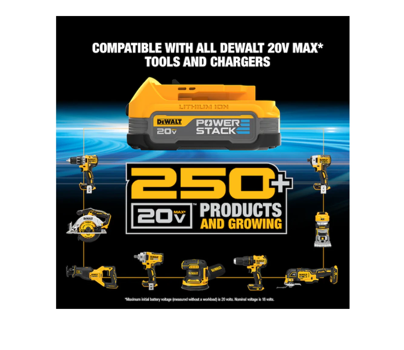 | Battery Platform | DEWALT 20V MAX POWERSTACK |