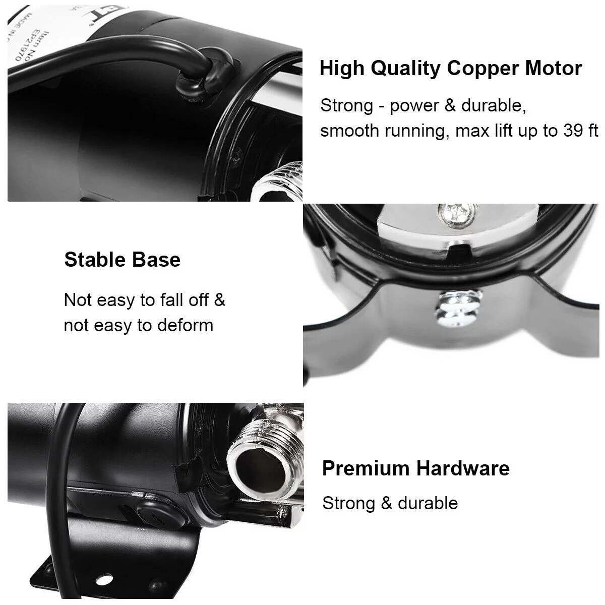 - Water transfer up to 330 gallons per hour, maximum lift up to 39 feet
