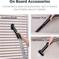 - Multiple accessories included; A quick-release handle connected to the stretch hose for above-floor cleaning; a crevice tool, dusting brush, and upholstery tool for hard-to-reach areas.