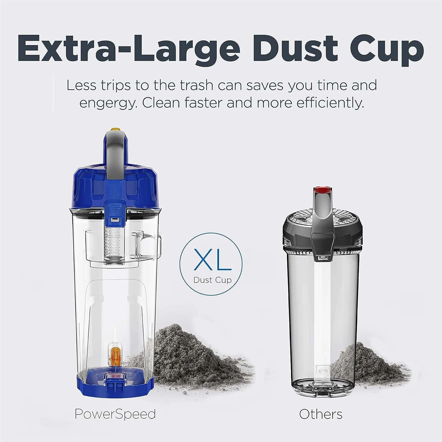 - Extra-large 2.6L capacity; The extra-large dust cup holds more dirt and requires less frequent emptying; clean more, empty less.