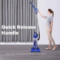 We know you value a clean home and Eureka is proud to offer whole home cleaning solutions to make life a little easier. Our Eureka PowerSpeed upright vacuum cleaner is the ultimate cleaning companion! This lightweight yet powerful vacuum makes cleaning a breeze. The large-capacity dust cup and washable filter free you from stop and empty the vacuum or purchase new filters. The five height adjustments function, wide nozzle and multiple accessories make this vacuum perfect for various surfaces. Use it to clean carpets, rugs, hardwood floors, cars, ceilings, lampshades, furniture, and more! Whether you’re searching for a handheld vacuum or apartment essentials for your first apartment, this vacuum has got you covered. Don’t settle for a vacuum that only cleans floors – order now and experience the difference! Actual product may vary in handle material due to manufacture issue. It might be original plastic or metal.