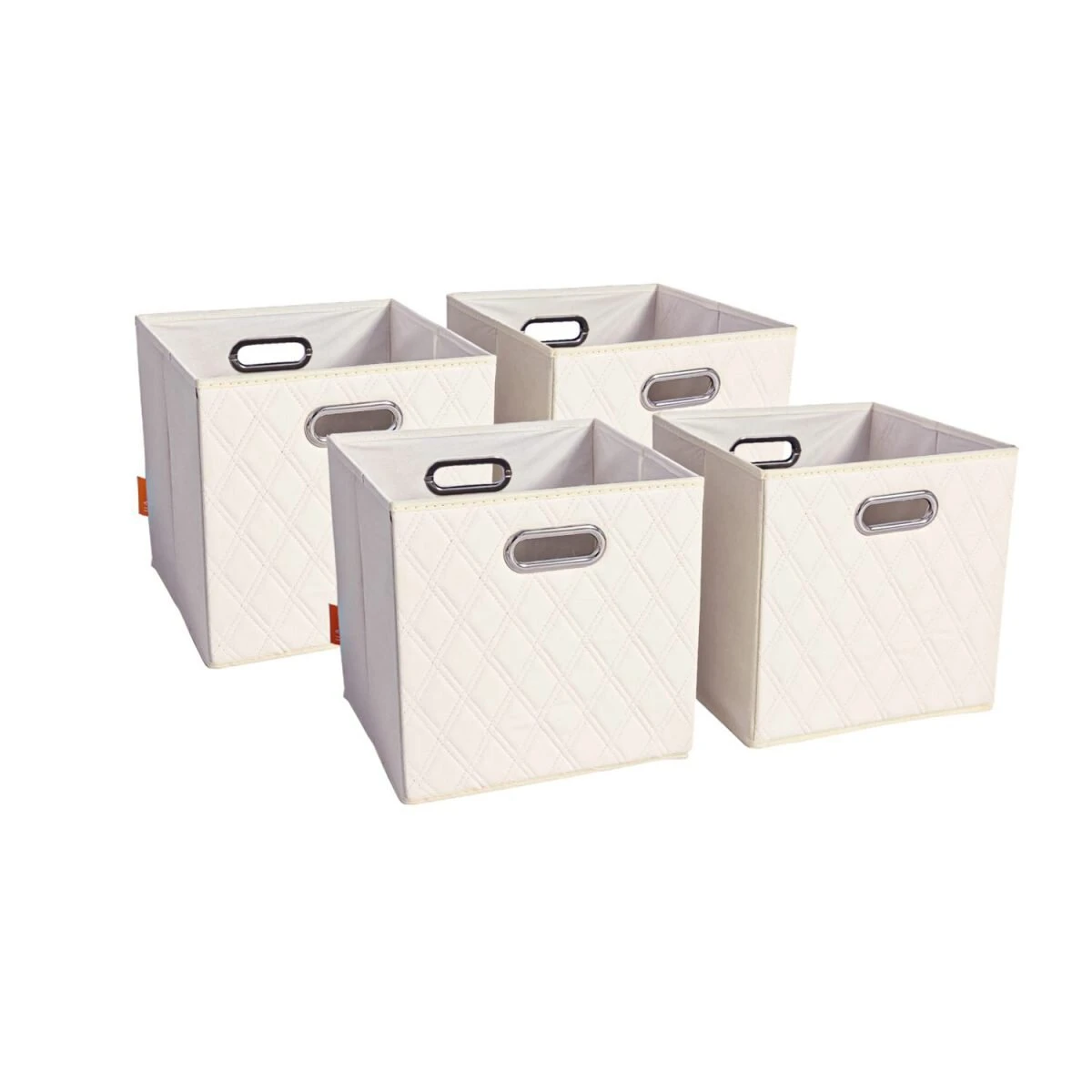 - Set of 4 small 11-inch faux leather storage cubes for organizing toys, shoes, closets, and office clutter