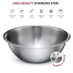 - STAINLESS STEEL – Features an attractive mirror finish for an elegant look enhancing your kitchen. These metal bowls are easy to clean as well as odor, stain and taste resistant