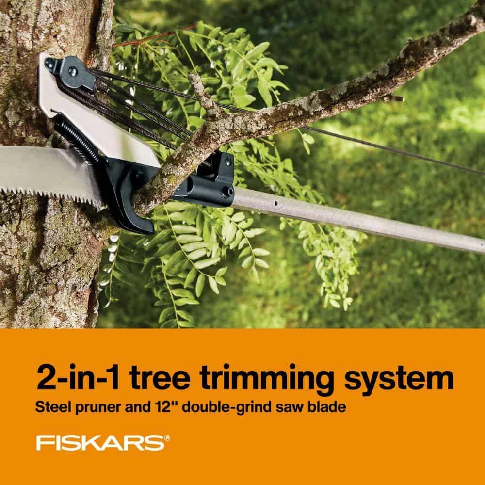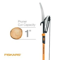 Simplify tough, high cuts with the Fiskars 1 in. Extendable Pole Saw and Tree Pruner. This specialty tool includes a ground steel pruner and 1 double-grind saw and extends up to 12 ft. for access to hard-to-reach areas. A unique double locking system ensures the pole stays extended for superior control. Plus, an easy-to-handle, lightweight pole makes reaching lofty limbs easier.