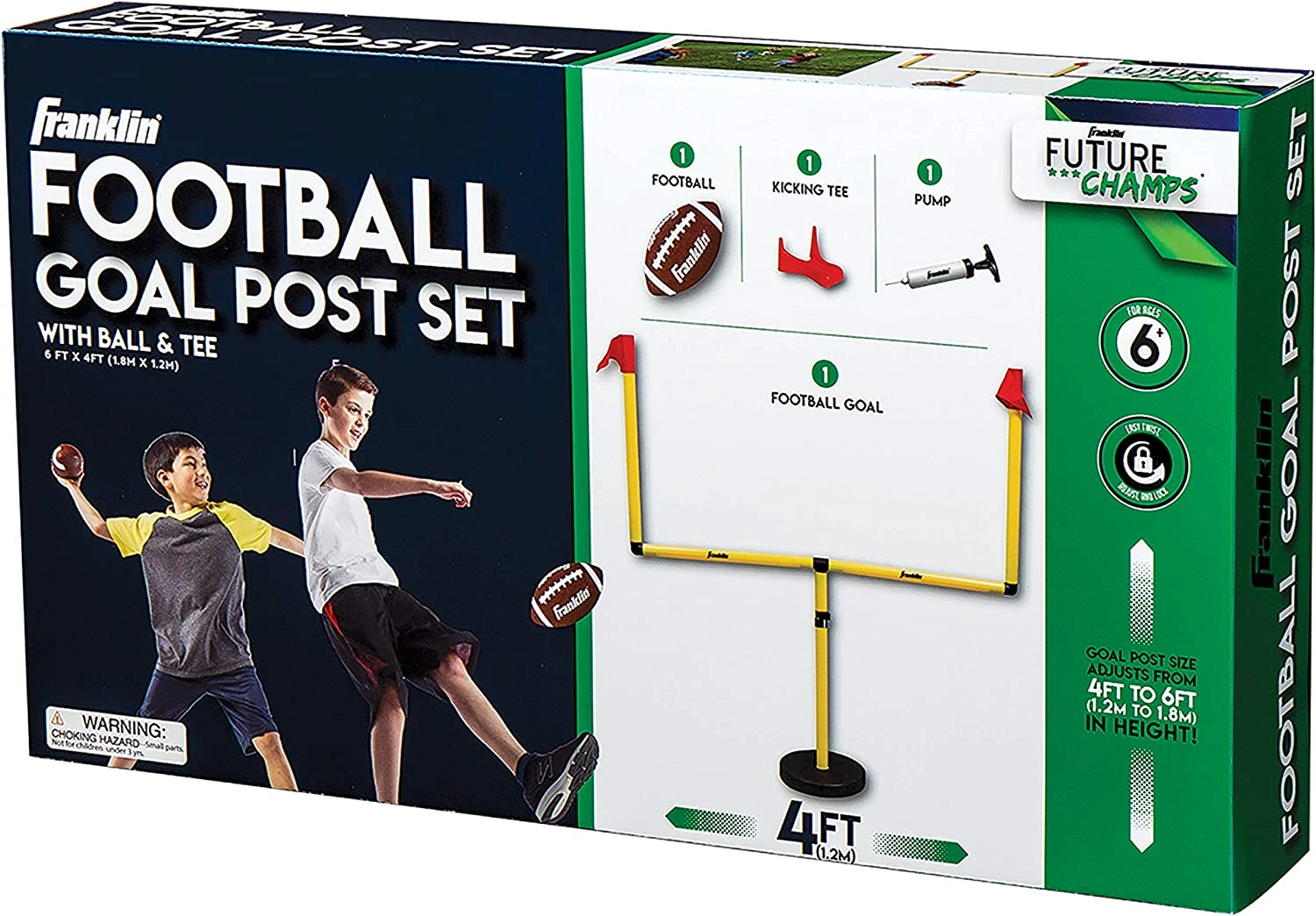- Wide football goal: Not every football field goal is created equal. Franklinβs wide football field goal post, 6ft x 4ft, is designed to encourage good kicking and field goal preparation habits from an early age