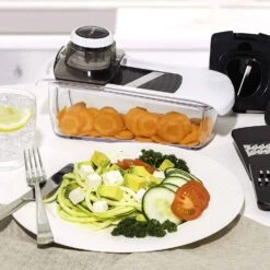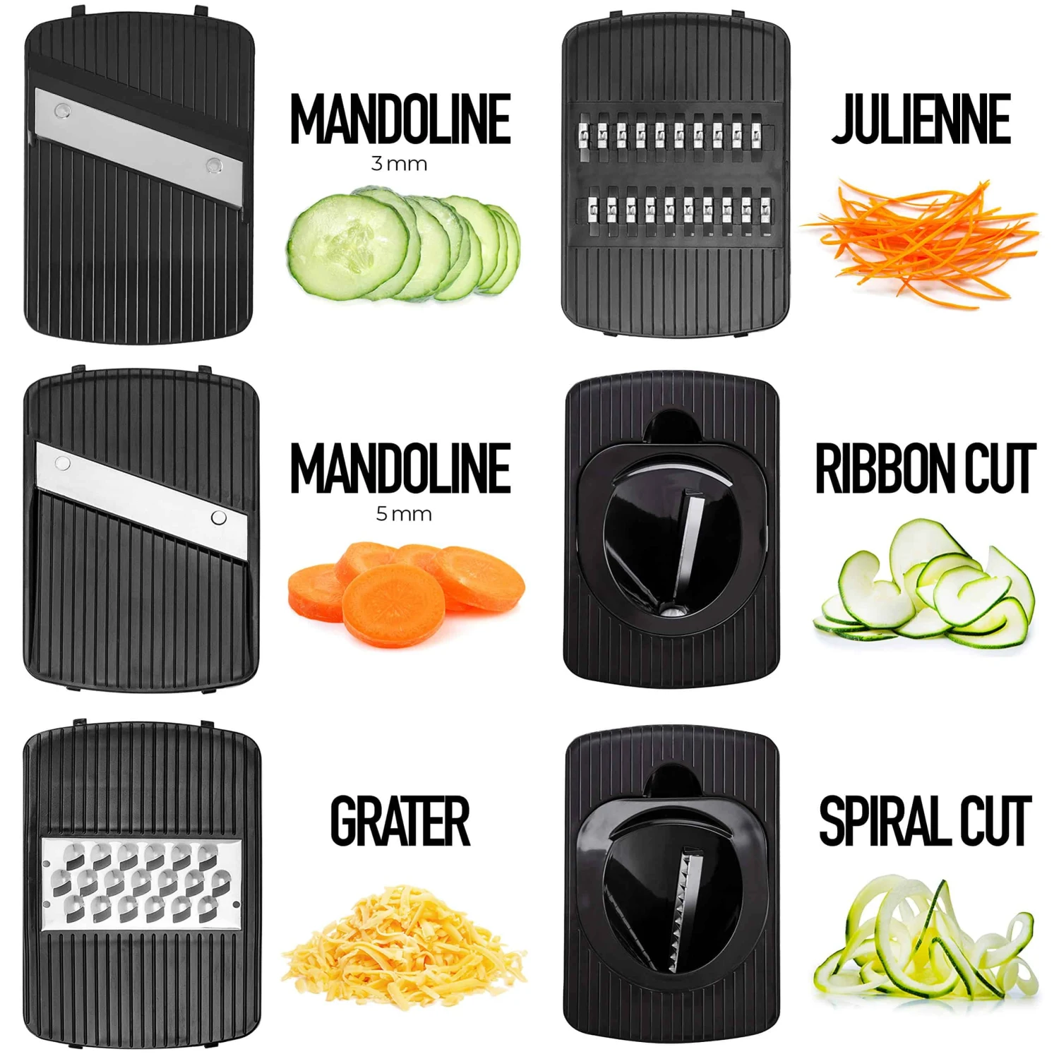 - Greatest functionality on the market – 6 interchangeable blades meet all your slicing and grating needs whilst our spiralizers are perfect for zoodles, healthy vegetable pastas and gorgeous garnishes.
