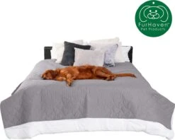 FurHaven Waterproof Cat & Dog Blanket Protector, Quilted Gray – 68″ x 82″ – Full