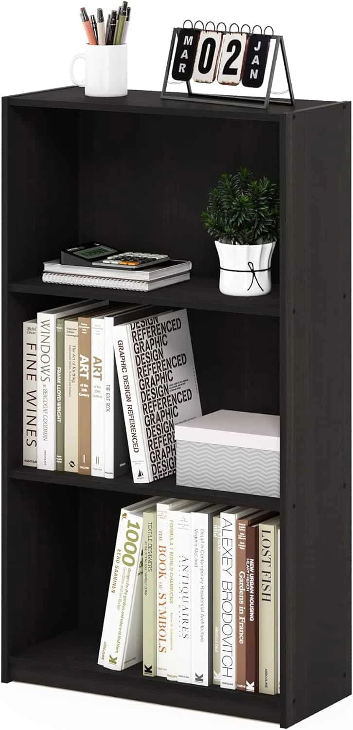 Furinno Basic 3-Tier Bookcase Storage Shelves, Espresso