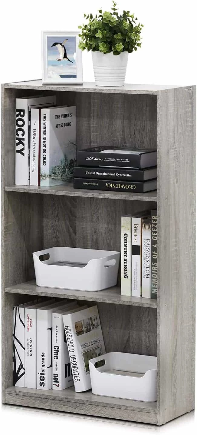 Furinno Basic 3-Tier Bookcase Storage Shelves, French Oak Grey