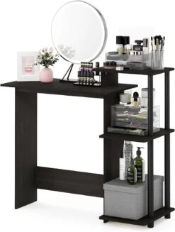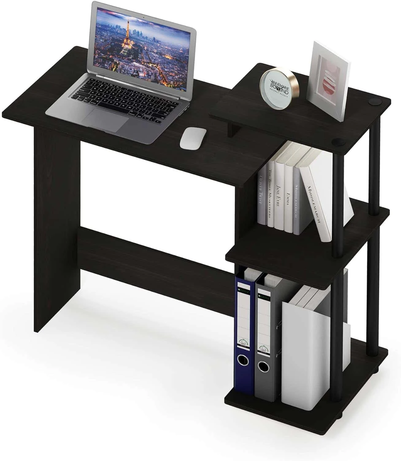 Furinno Efficient Home Laptop Notebook Computer Desk with Square Shelves, Espresso/Black
