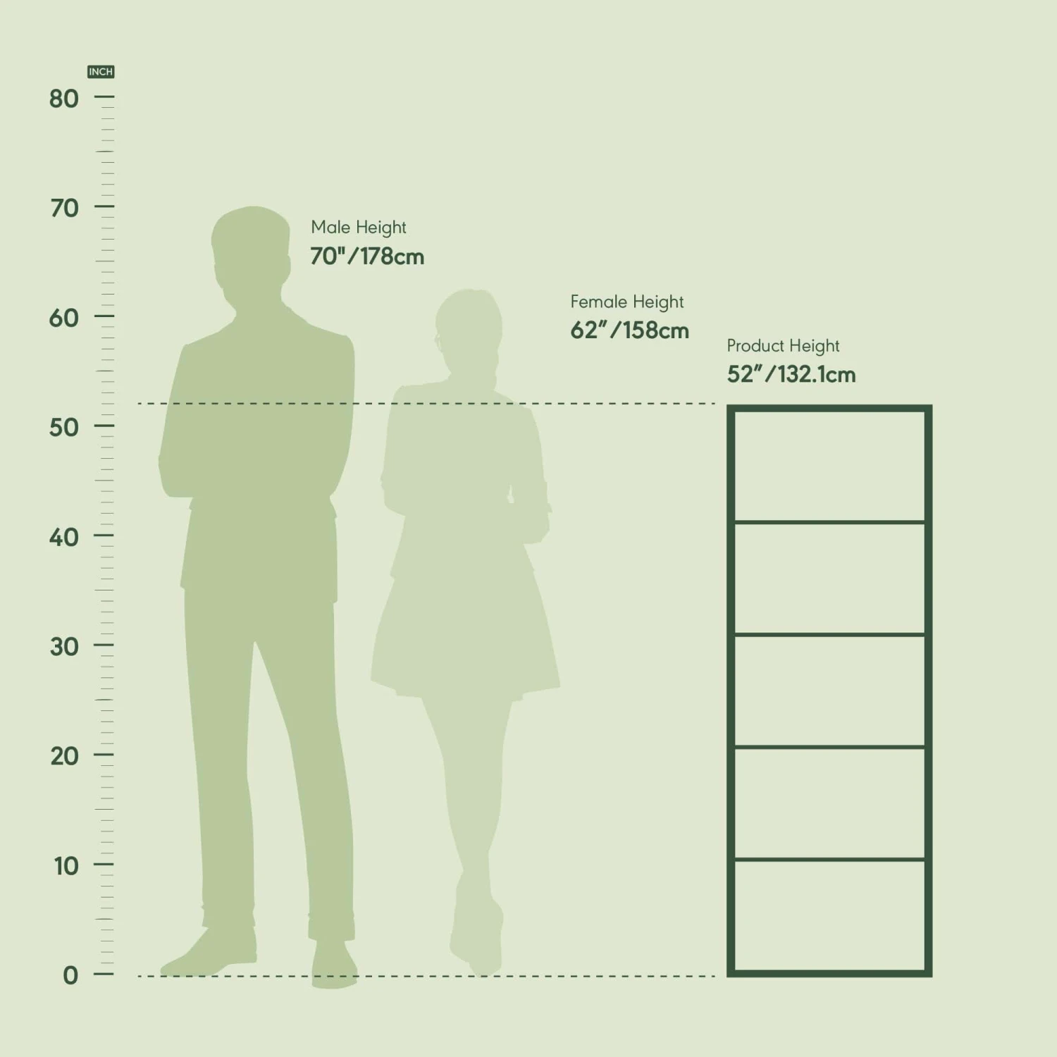 - Product dimension: 15.75(W)x51.97(H)x9.44(D) inches.