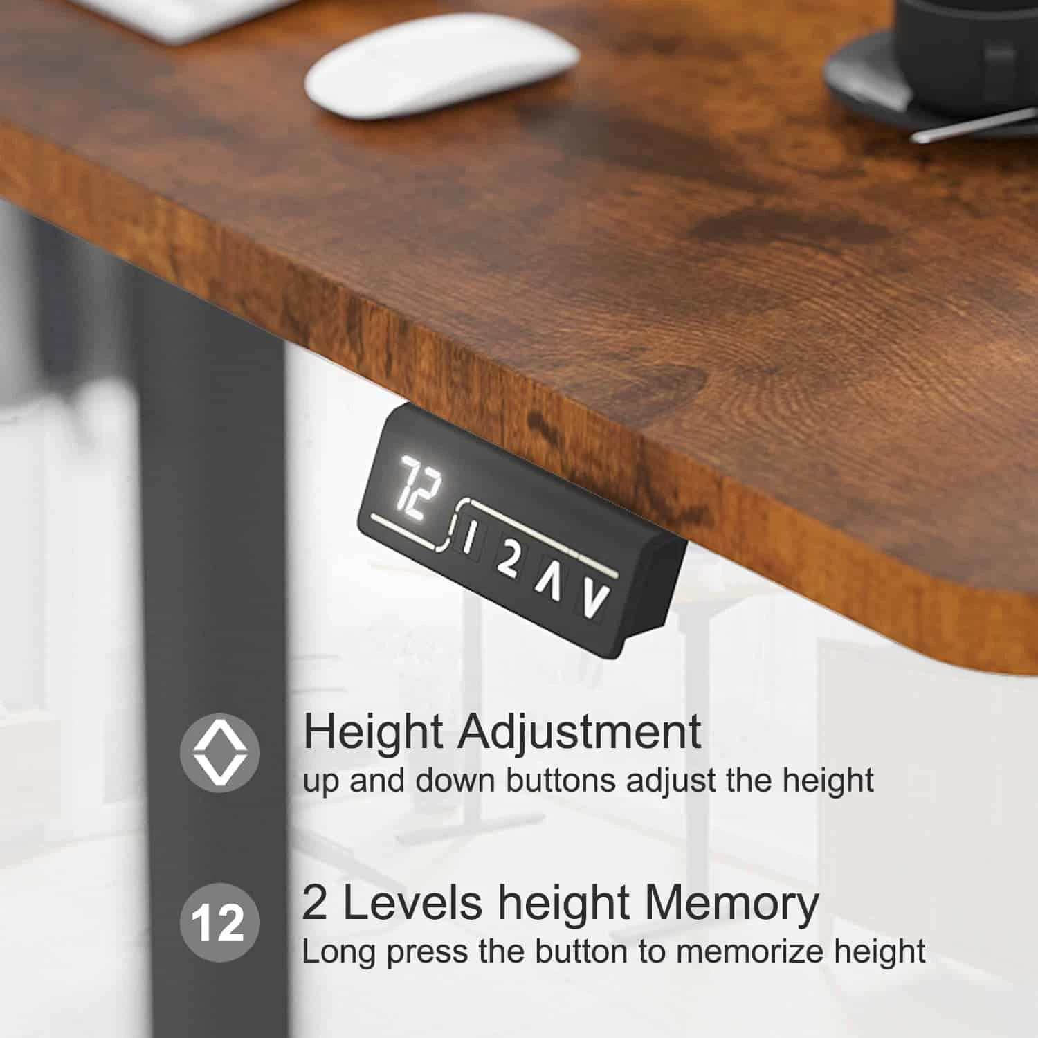 - Memory Electric Lift: Compared with the ordinary office desk, this standing desk can easily control the height using buttons, so that it can be used by people of different heights in different scenes. The design of 1/2 memory keys allows it to be adjusted quickly and accurately to your preset comfortable height.