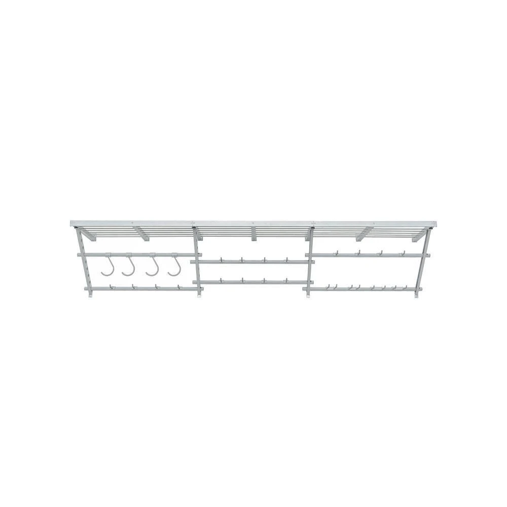 The Ultimate Kit is made to store bins, holiday decorations, camping gear and other larger seasonal or seldom-used items on top, while storing frequently used items below. Store yard tools, bikes, sports equipment, or other frequently-used items using the variety of included hooks. The Garage Essentials system is engineered to allow for layered storage providing twice the hanging space in half of the width of other track products.