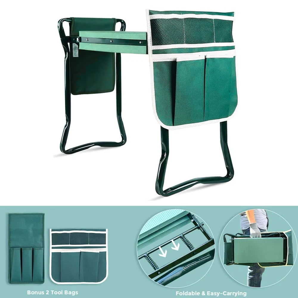 2-in-1 design, both a garden kneeler and a garden seat. Eases gardening’s physical toll and protects your clothes from dirt and grass stains. Made of high-quality steel tubing for reaching max balance. 2 well padded EVA foam cushion reduces the pressure on knees. Folding design, makes carrying and storage easy.