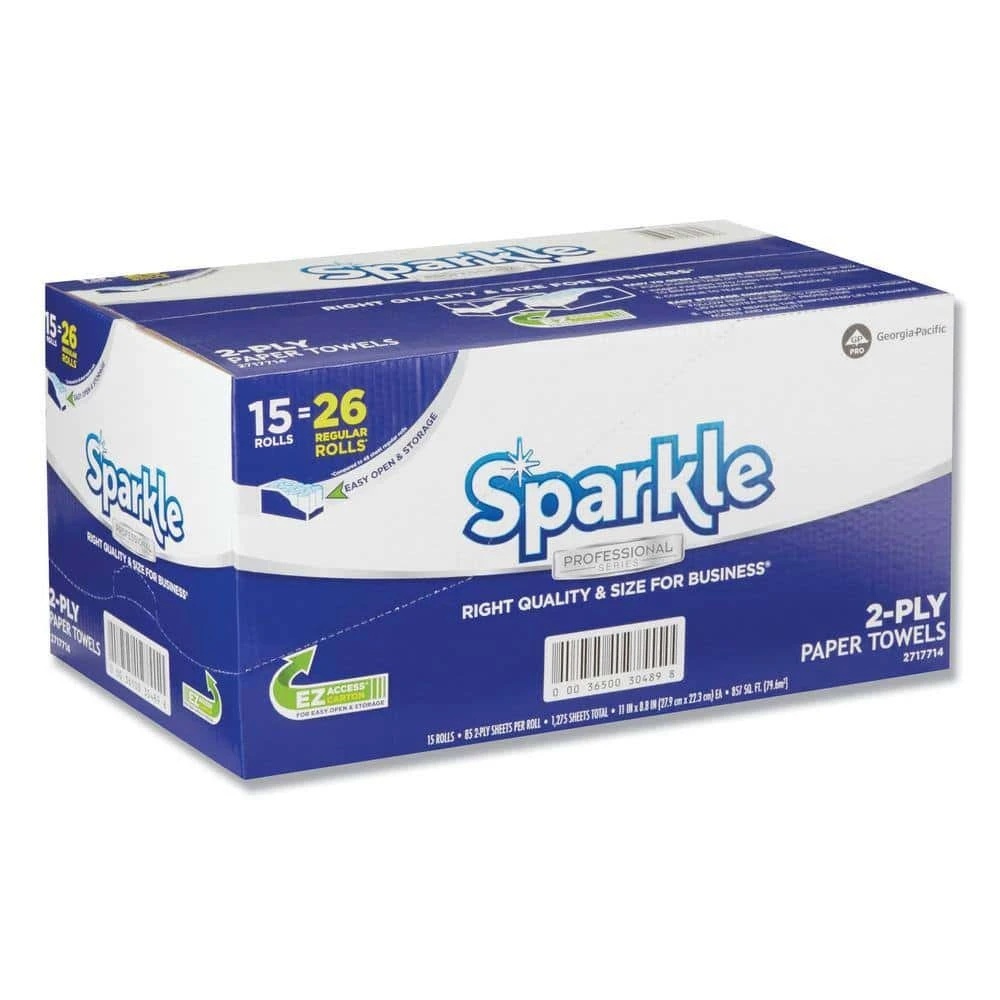 Sparkle Professional Series 2-Ply, embossed patterned premium white kitchen roll paper towels bring premium quality and brand recognition to a wide range of professional work environments in which quick hand-drying and light clean-ups are required. GP PRO is a division of Georgia-Pacific Consumer Products. We deliver well-designed, durable and easy-to-maintain professional solutions to meet the hand-washing and cleaning needs for a range of business applications. Convenience Park. Towel/Wipe Type: Perforated Roll, Application: General Purpose, Material(s): Paper, Number of Plies: 2.