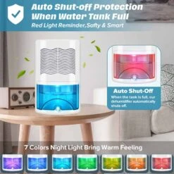 Whisper-Quiet Operation and Sleep Mode: With noise levels below 30dB, our dehumidifier ensures minimal disturbance in your home. The sleep mode allows you to use it noiselessly while you rest - Ambient 7-Color Light for a Soothing Atmosphere: Enhance your home’s ambiance with our dehumidifier’s built-in 7-color light feature. Perfect for creating a soothing environment while efficiently removing excess moisture from the air