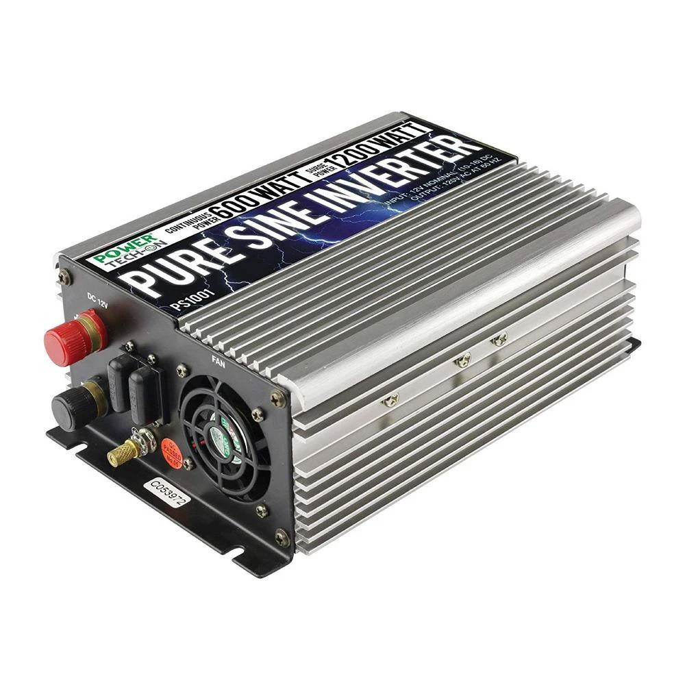 - GoWISE Power PS1001 pure sine power inverter 600-Watt continuous/1,200-Watt surge, 12-Volt DC to 120-Volt AC with battery clips, 5 kinds of protection systems and 3 output sockets