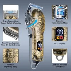 This hair cutting kit contains everything you need to have a professional cut right in the comfort of your own home. Hairspower professional clipper kit offers an easy way to cut your hair, which is also the first choices of the barber or stylist.The blade of this barber clipper adopts precision high carbon steel blade, which can maintain long-term sharpness without pulling the hair. : The blade of this barber clipper adopts precision high carbon steel blade, which can maintain long-term sharpness without pulling the hair. You can easily control the hair length and trim a variety of hairstyles with adjustable taper lever and guided combs.