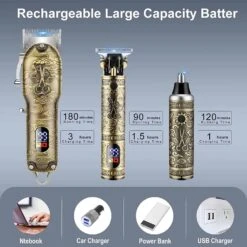 - 【LCD Screen and Battery Life】: Built in LCD display that indicates when your hair clippers need to be oiled or charged. offers up to 180 minutes of running time with charging 3 hours for the hair clipper. 90 minutes of running time with charging 1.5 hours for the detailed trimmer.The nose hair trimmer which can provide 120 minutes of operation time with only one hour of charging