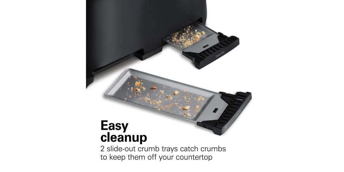 - Easy cleanup with 2 slide-out crumb trays