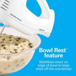 - Bowl Rest feature. Frees your hands by stabilizing the mixer on the edge of the bowl when the mixer is not in use, so drips end up in the bowl and not on your countertop.