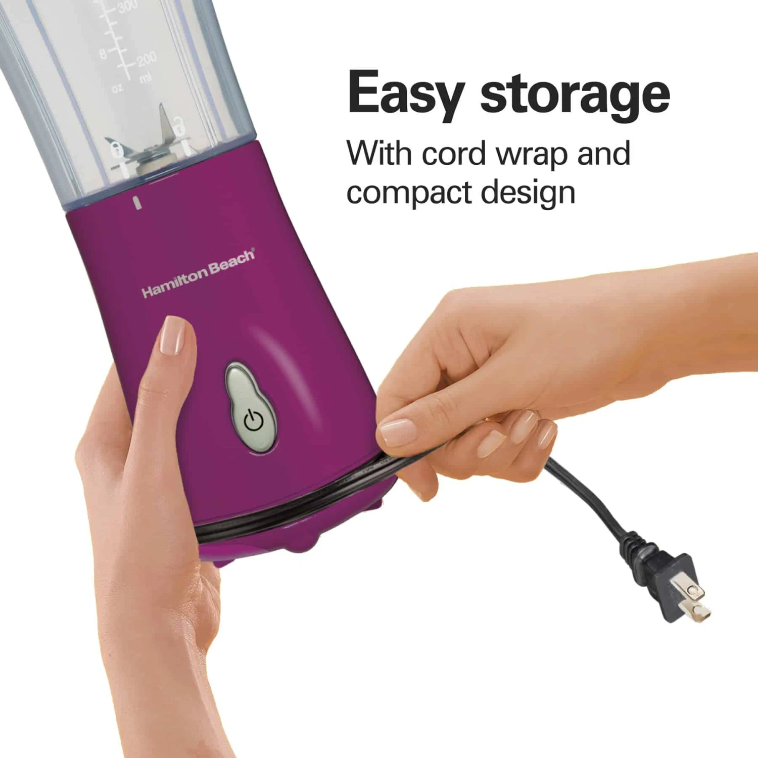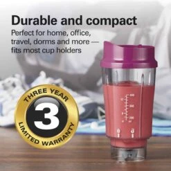 Hamilton Beach Portable Blender for Shakes and Smoothies with 14 Oz BPA Free Travel Cup and Lid, Durable Stainless Steel Blades for Powerful Blending Performance, Raspberry (51131)
