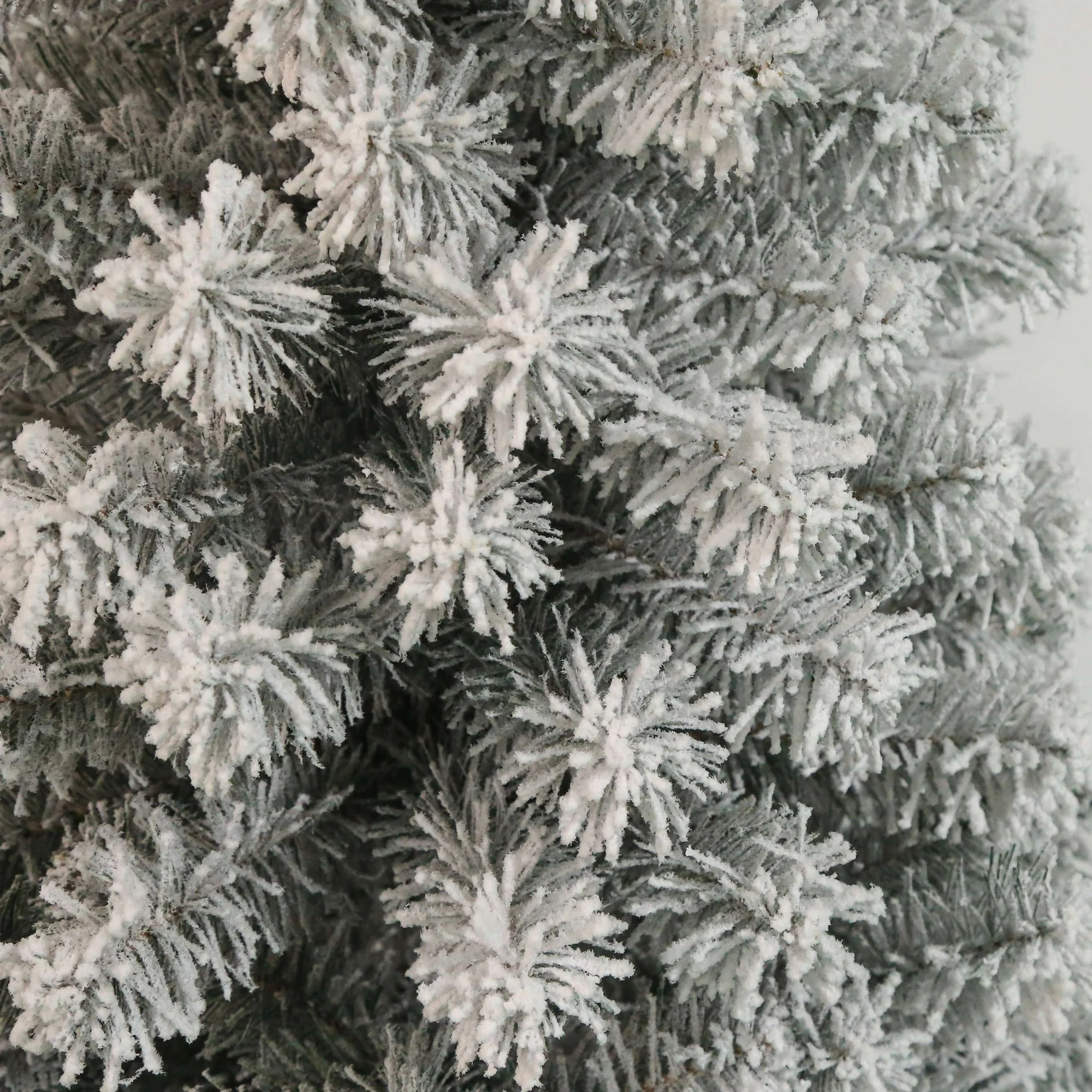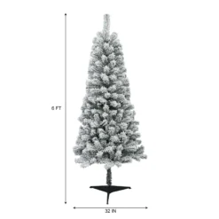- This beautiful flocked pine is 6 ft tall and 32 in wide, featured with 378 PVC tips.