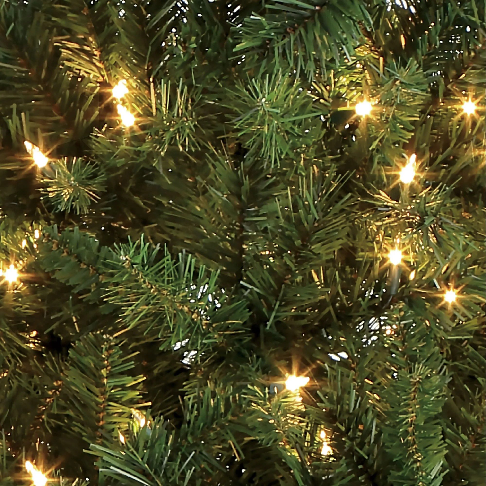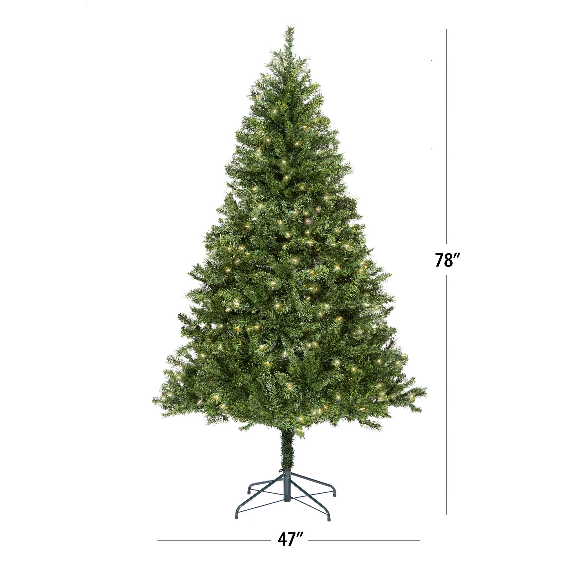 LED Holiday Time 6.5 Foot Arlington pre-lit artificial Christmas tree with 300 LED warm white lights. With state of the art hinged construction, this tree is simple to set up and provides a full natural and realistic look. 909 branch tips, 47 inch diameter, and metal stand, this tree will light up any room for the holiday season!