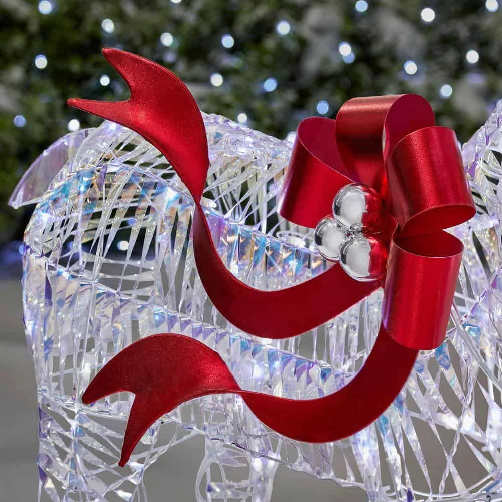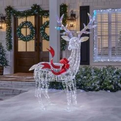 Celebrate the season with this 6 ft. Iridescent Ribbon Reindeer Holiday Yard Decoration. The 90 LEDs can light up your yard or porch with a dazzling effect. It’s simple to set up and is a durable option for your home.
