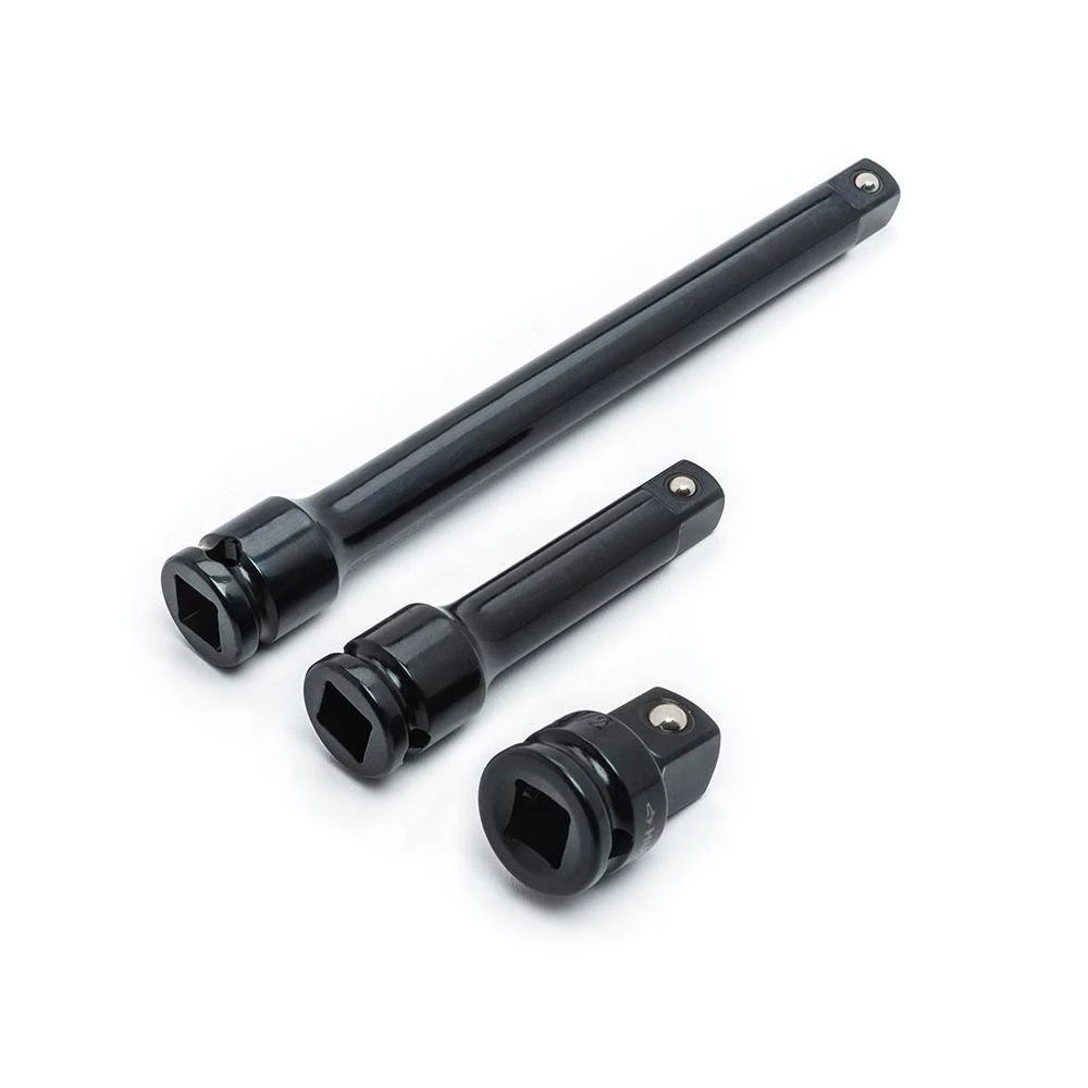 - Includes two 1/2 in. drive impact extensions – 2.5 in. and 6 in. – and one 1/2 in. female to 3/8 in. male impact adapter