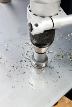 Carbide tips cut holes through stainless steel and outperforms HSS cutters and bi-metal holes