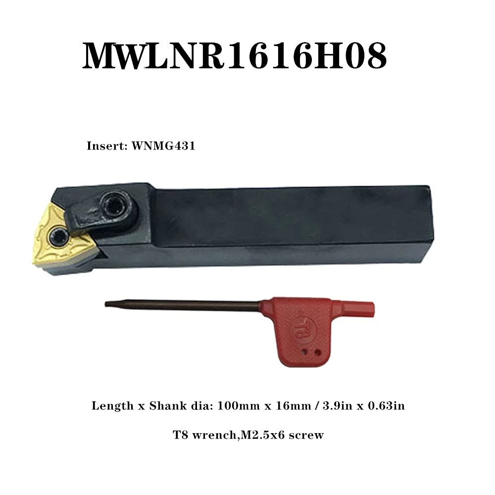 - Right hand MWLNR16126H08: length:4in, shank dia:0.63in (5/8″),with 1 piece WNMG431 Insert