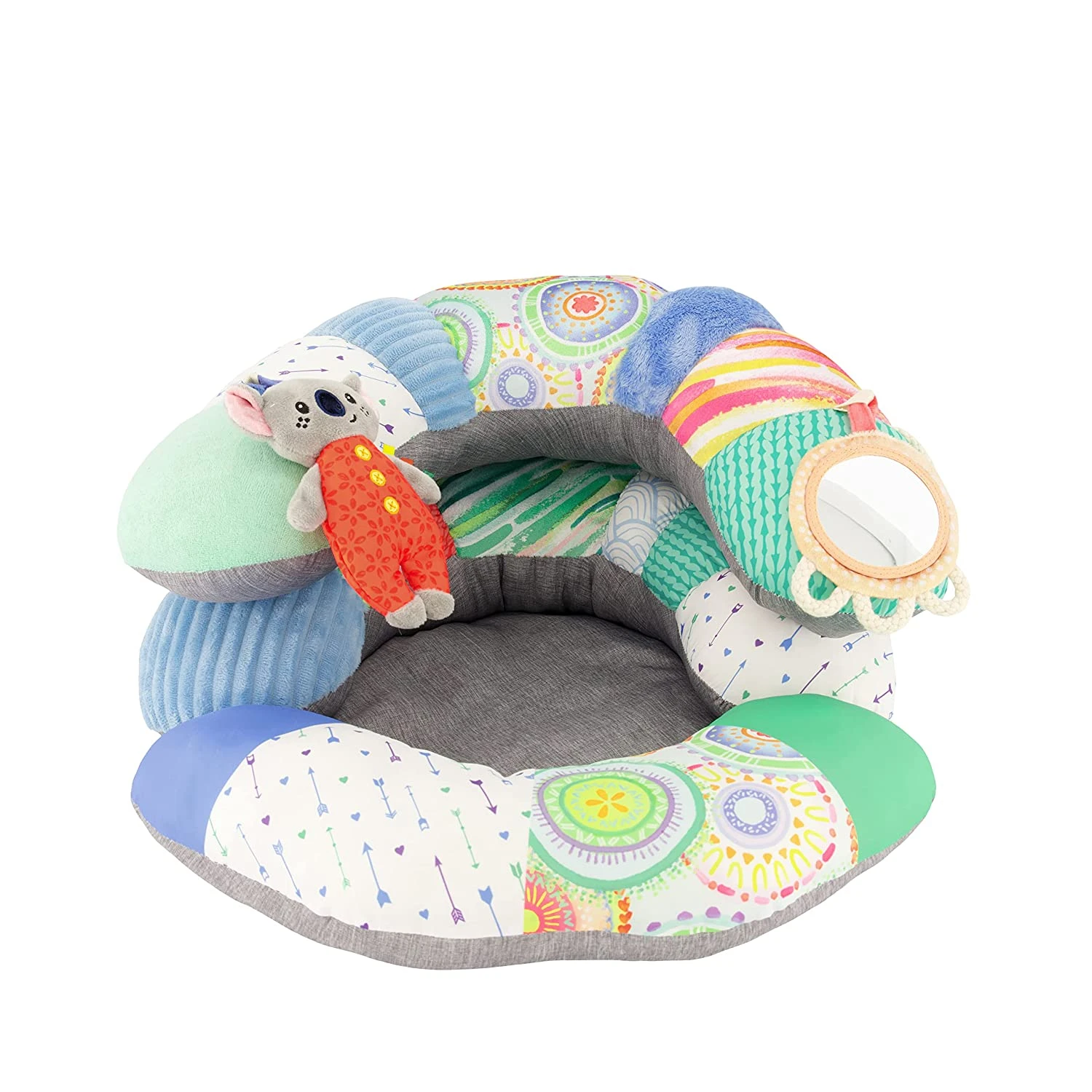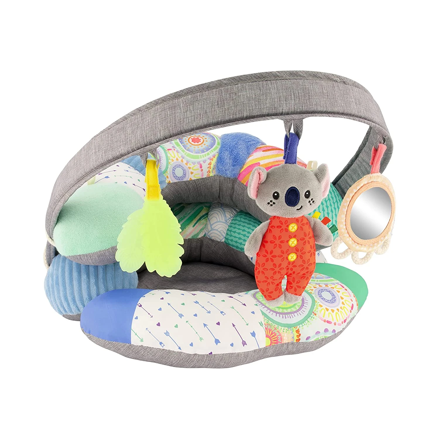 Infantino 3-in-1 Tummy Time, Sit Support & Mini Gym – Removable Toy Arch – Musical Koala Pal, Soothing Leaf Teether & Peek-and-See Mirror – for Babies, 0M+