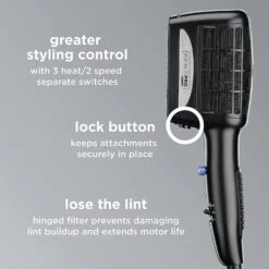 - Innovative Design: This styler features Ionic and tourmaline ceramic technology that helps protect hair from heat while adding shine and decreasing frizz by up to 75 percent; Hinged filter for easy maintenance
