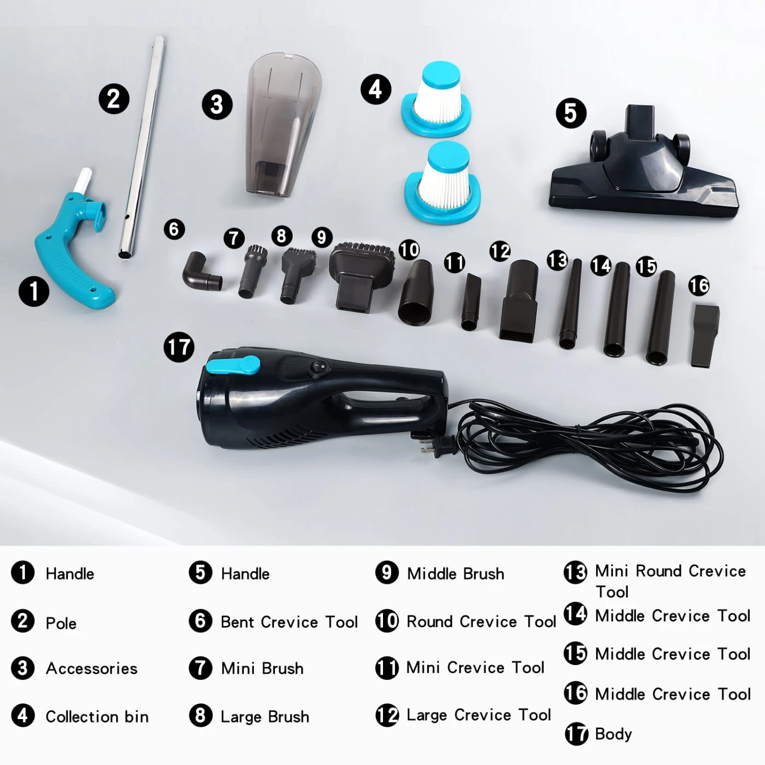 Intercleaner 12 in 1 Lightweight Stick Upright Corded Vacuum Cleaner is a Perfect Gifts for Family ! Our multifunction vacuum cleaner can help you easily cleaning out different kinds of trash, such as pet hair, dusts, snack crumbs,coffee beans and cat litters.