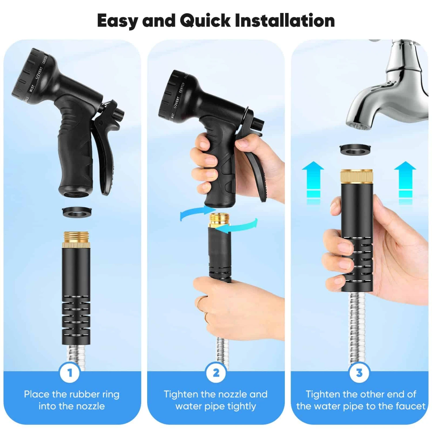 Itsonestep Garden Hose 50 FT, Metal Stainless Steel Water Hose with 10 Function Nozzles