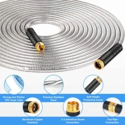 Sturdy for Long Term Use: The garden hose metal is made of high-quality PVC and sturdy 304 stainless steel. The stainless steel water hose is sturdy, rust free, leak proof, puncture proof, and pet proof. Not only can it be dragged on various materials of flooring for a long time without easily breaking, but it can also work normally in extreme weather.