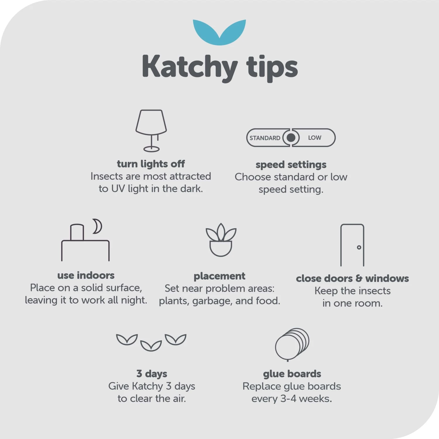 At KATCHY, our mission is to make your home or business a no-fly zone. To do that, we combine stylish design with safe, bug-eliminating science. From the original Katchy Original to our all-new Katchy Duo, every product is thoughtfully designed to kill bugs without cluttering your countertops.