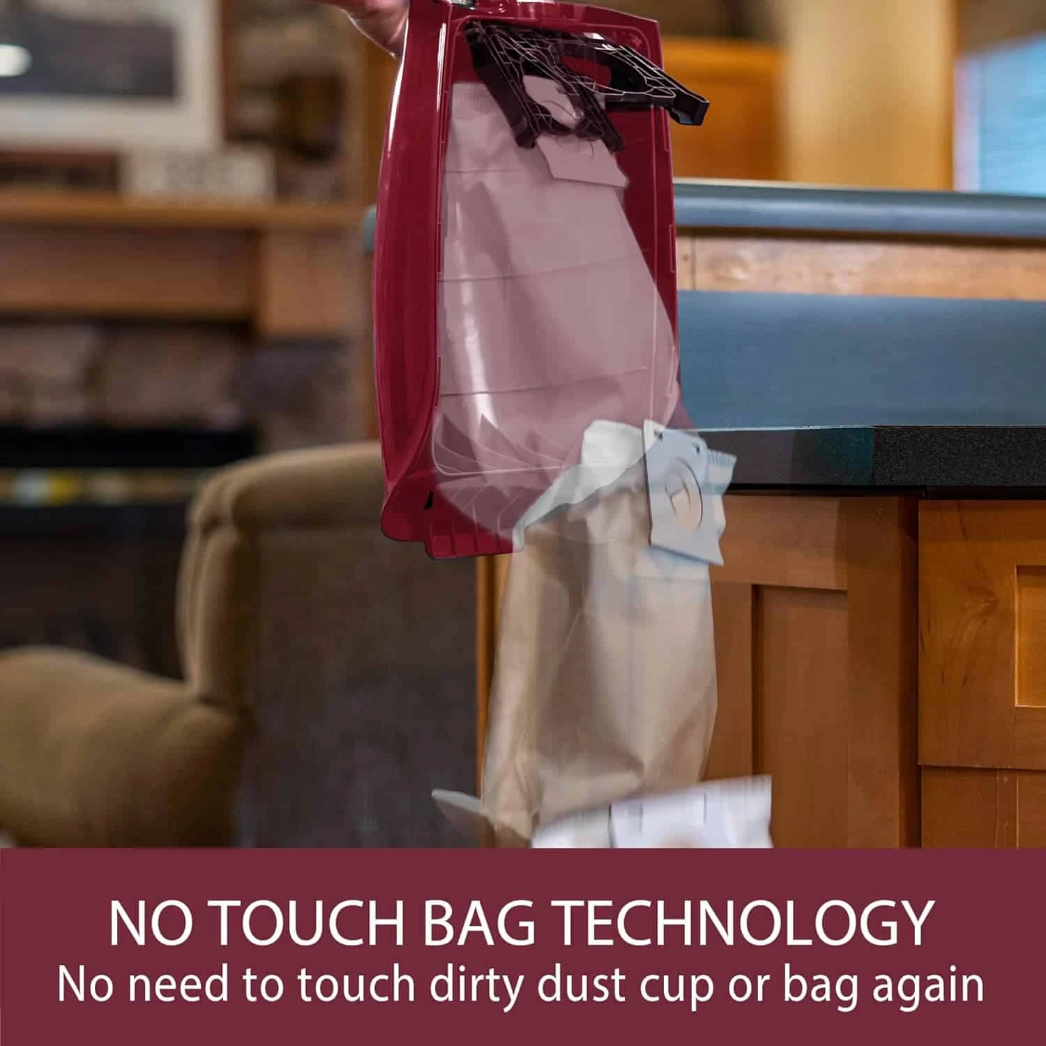 - No Touch Bag Technology: No need to touch dirty dust cup or bag again. Hands-free operation and self-sealing bags keep your home environment clean.