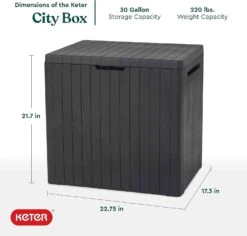 Keter City 30 Gallon Resin Deck Box for Patio Furniture, Pool Accessories, and Storage for Outdoor Toys, Grey